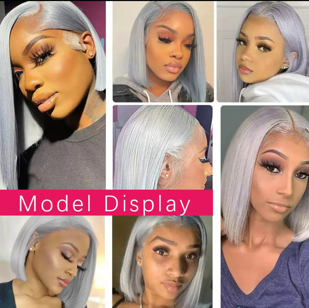 Perruque Bob Grise 13x4 – Lace Front 100% Cheveux Humains